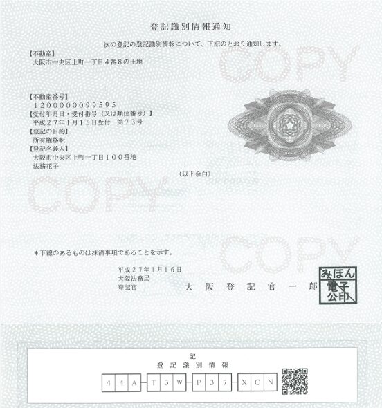 登記完了時に交付される登記識別情報通知書にも地番が記載されています。